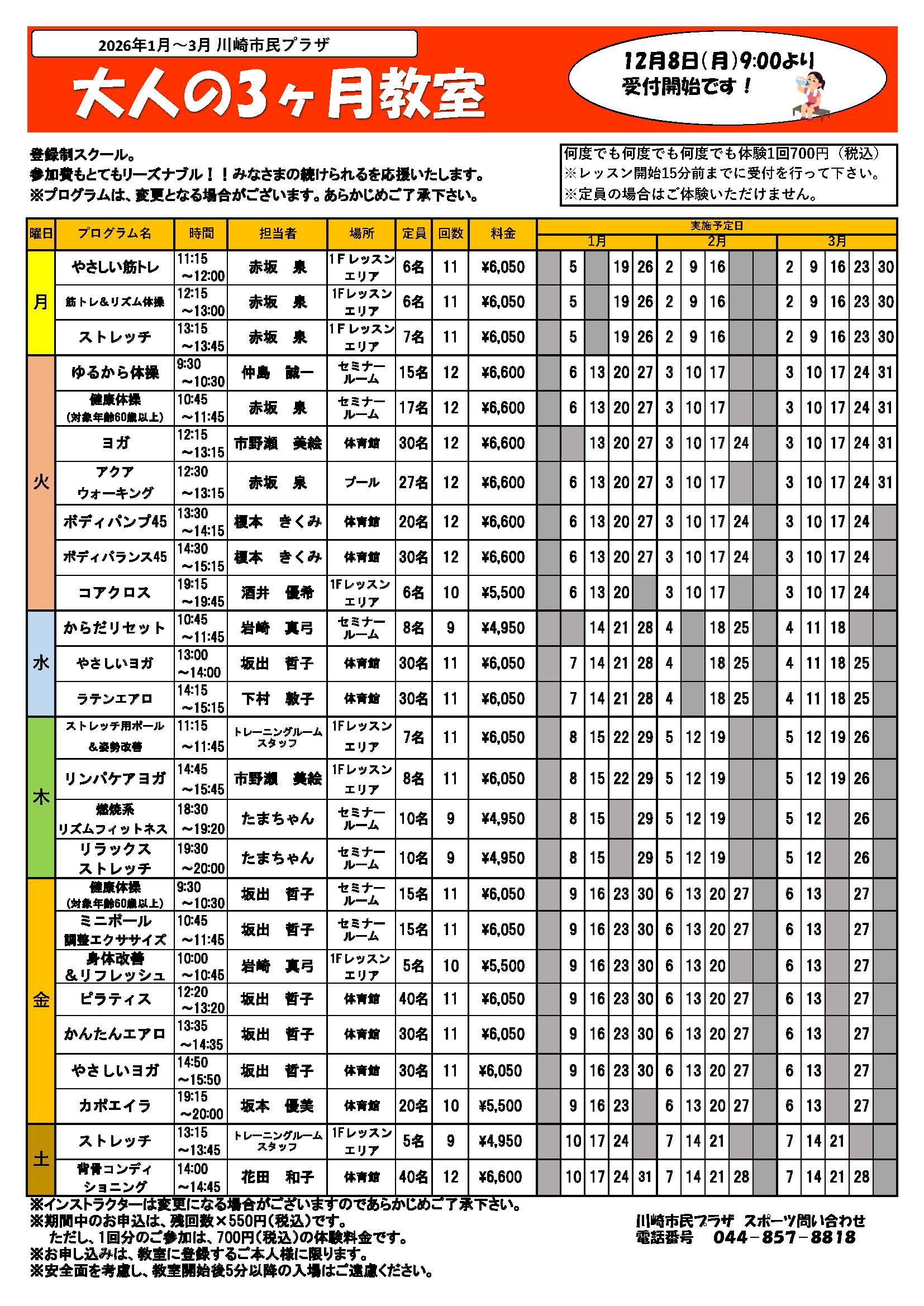 ※インストラクターは変更になる場合がございますので、あらかじめご了承下さい。