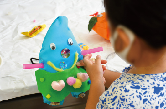 見たことも聞いたこともない『くうそうのいきもの』を布と綿でつくる、想像力を育むワークショップです。